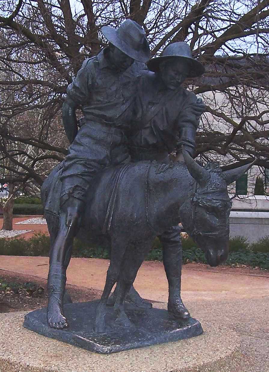 He carried on performing this task, totally independent of any orders, with donkeys variously called Abdul, Murphy, Queen Elizabeth and Duffy, for twenty-four days before he was killed. Duffy is the donkey who has made it into legend as the donkey first found by Simpson. After Simpson’s death, the last of Simpson’s donkeys is said to have returned to the camp hospital on his own, carrying the last wounded soldier Simpson had put onto his back.