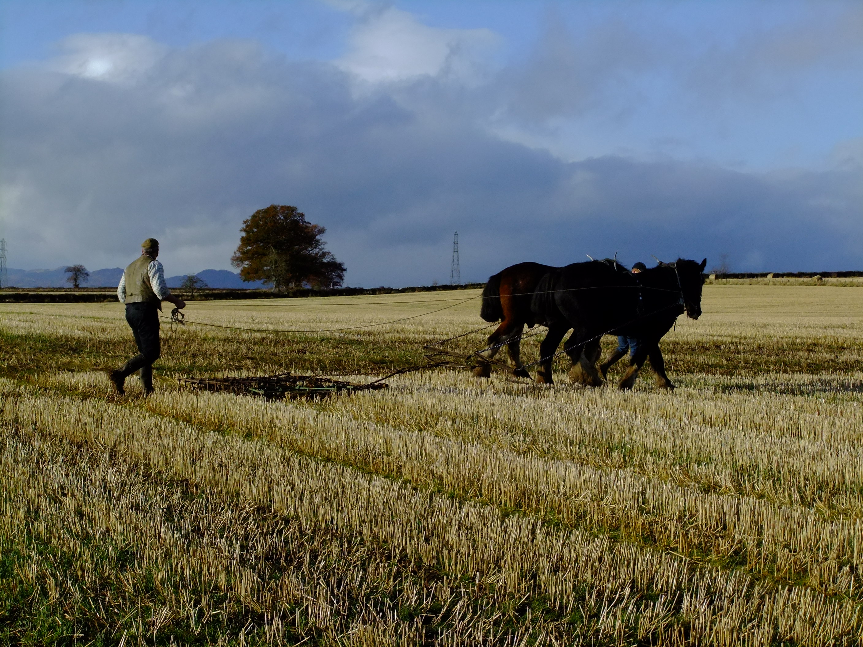 Harvey, one of the pair that Mr Thomson and his son are using today, is Irish-bred and started out as a trekking pony. He’s clearly a character and has taken well to his job as a plough horse. Mr Thomson explains that both he and his ploughing partner Nero are now in their early twenties and “we’re just getting them the way we want them.” This is, without a doubt, the greatest thing I have ever heard from a horseman. It takes time and patience to build the relationship, whether you are teaching a horse to draw a plough or perform in the Spanish Riding School, whose horses are also often in their prime in their teens and twenties. Be ready for the long haul, put in the effort and you’ll be rewarded with long term success. And treat your horses kindly, as partners, not slaves or machines. That was the message of the old horsemen, who believed they and their horses were one.