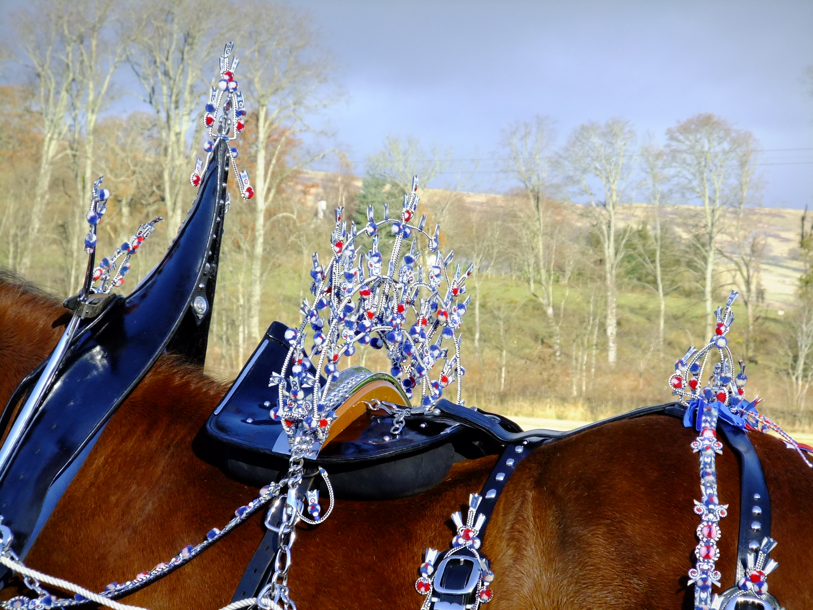 The magnificent traditional chrome and leather harness, with its blue, white and red decoration, takes hundreds of hours to prepare.
