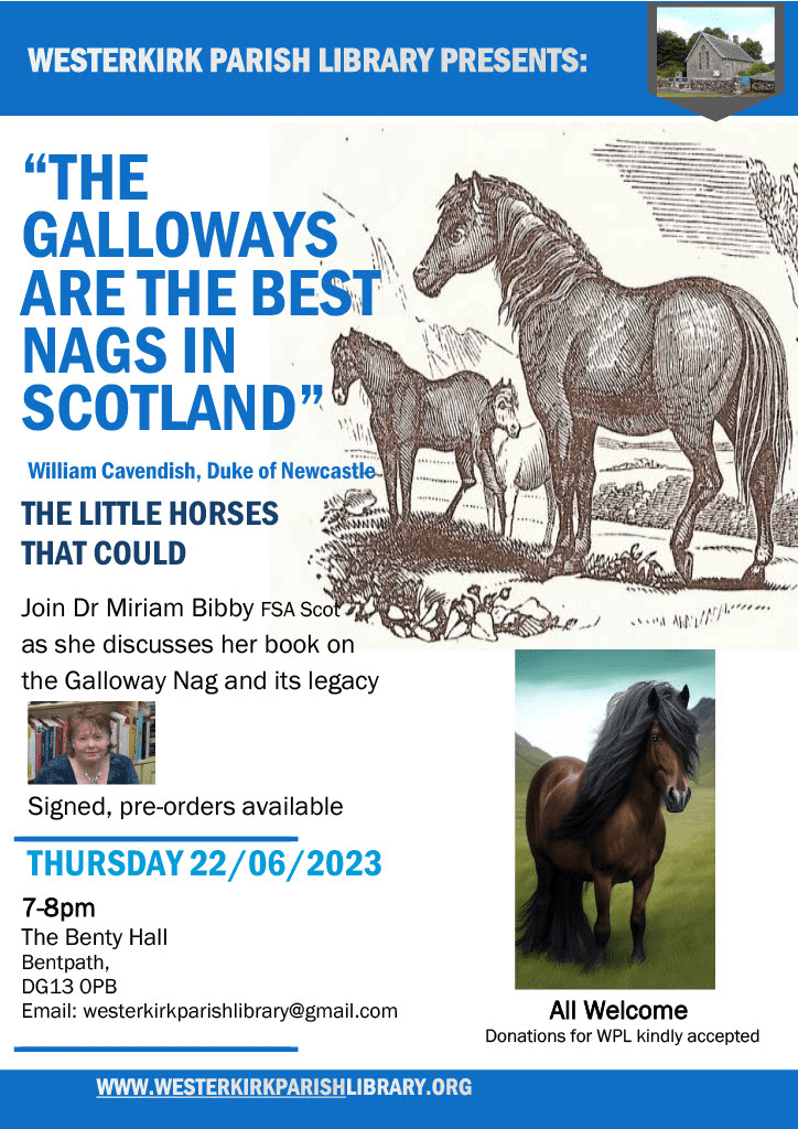Westerkirk Parish Library Galloway talk with Miriam Bibby Image Posted on May 28, 2023 by horsebackhistorian Share this: Click to share on X (Opens in new window) X Click to share on Facebook (Opens in new window) Facebook Click to share on LinkedIn (Opens in new window) LinkedIn Like Loading... Related